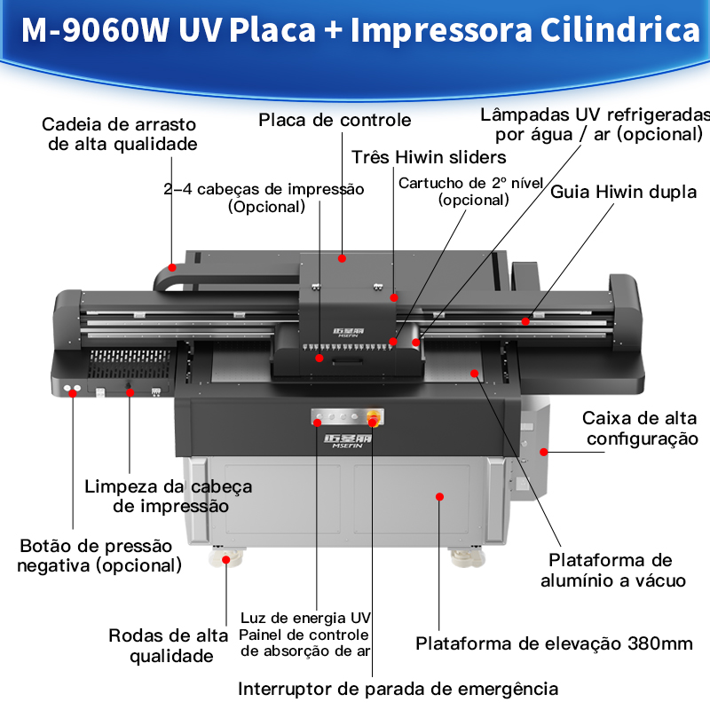 M-9060S placa plana + impressão cilíndrica em uma impressora UV