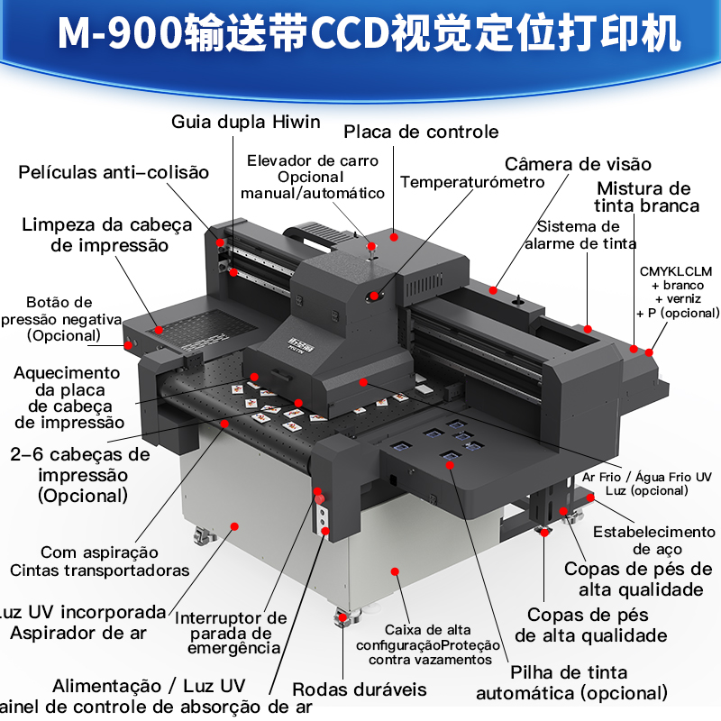 Impressora UV com correia de rede M-900 + posicionamento visual CCD