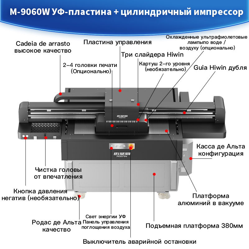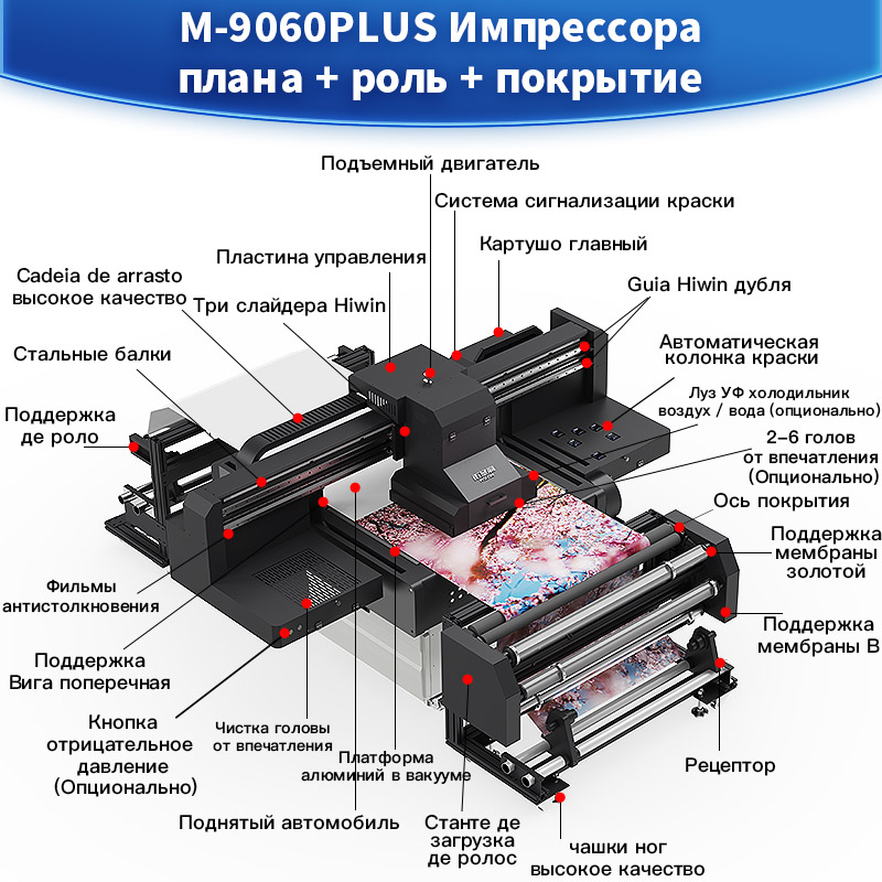 M-9060S Плоская пляцоўка + цыліндравы друк УФ-прынтэр