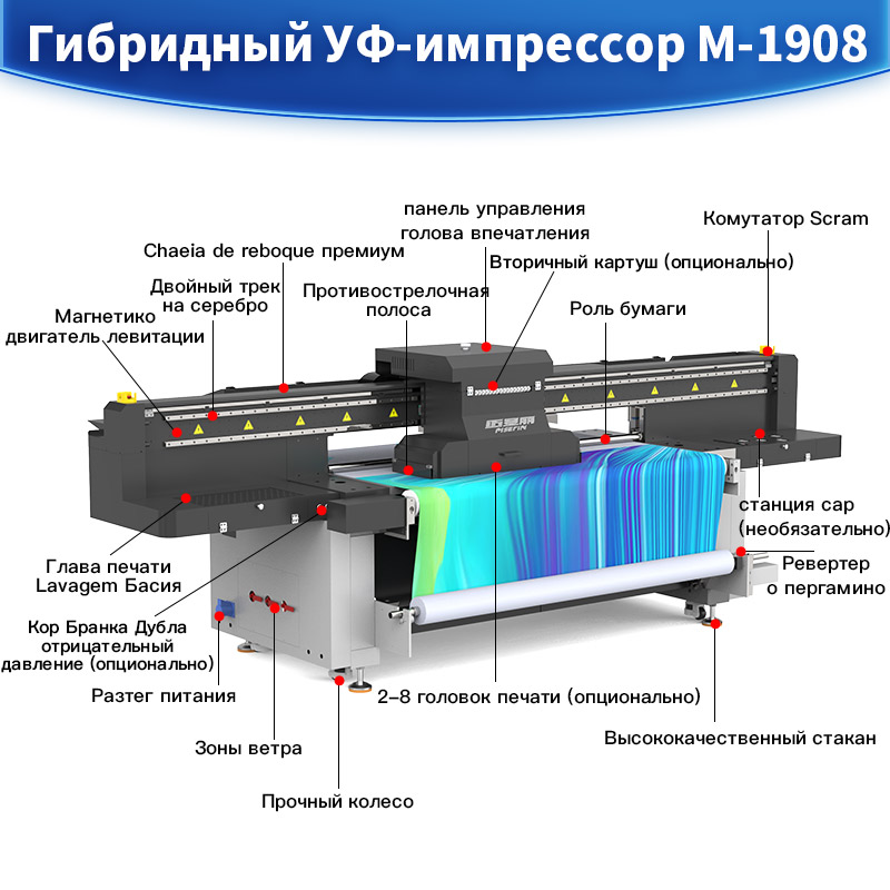 M-2513 плоскі + цыліндрычны друк УФ-прынтэр