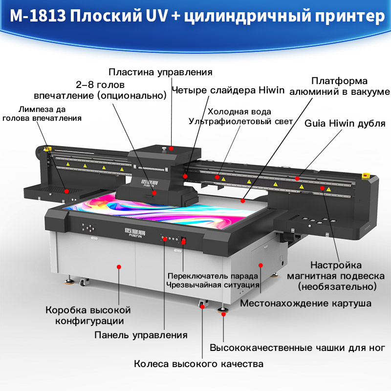 M-1813 Плоская пляцоўка + цыліндрычны друк УФ-прынтэр